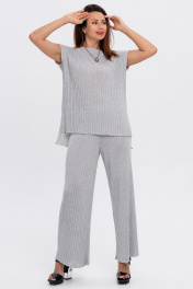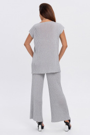 Трикотажные прямые брюки плиссе связаны из шелковой вискозы итальянского производства. Плиссированная вертикальная фактура мягко струится и свободно облегает фигуру. Брюки без подкладки, на мягком эластичном поясе. Брюки сочетаются в ансамбле с джемпером плиссе мод.10473. Предлагаются смежные размеры с 44 по 58 в росте 170 см. Длина брюк 102 см. Рекомендуется деликатная стирка с мягким моющим средством или химчистка, сушить на вешалке. Сушить лучше на вешалке, утюжить необязательно.