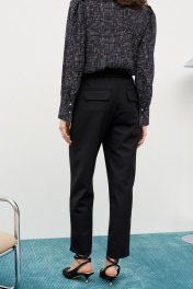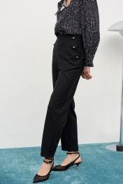 Брюки длиной по боковому шву 93 см (от шва притачивания пояса), по шаговому 66 см Ширина брюк по низу 17 см_x000D_ Передние половинки брюк с наклонными карманами и декоративными пуговицами _x000D_ Заднее полотнище брюк с эластичным поясом_x000D_ Имитация карманов с рамками и клапанами по заднему полотнищу брюк_x000D_ Застежка в боковом шве на потайную тесьму-молнию_x000D_ "_x000D_