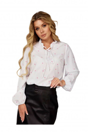 Элегантность и комфорт в каждом образе Белоснежная блуза с нежным розовым принтом — идеальный баланс между деловым этикетом и романтичным настроением. Модель с воротником-стойкой, украшенным изящной рюшей, и длинными завязками позволяет трансформировать образ: от строгого закрытого до игривого с пышным бантом. Высокотехнологичная ткань с вискозой Блузон выполнен из улучшенной ткани ниагара. Оптимальный состав (72% полиэстер, 25% вискоза, 3% спандекс) делает материал невероятно мягким и дышащим. Благодаря добавлению спандекса ткань слегка тянется, обеспечивая идеальную посадку, а вискоза дарит приятную прохладу. Главное преимущество — изделие практически не мнется и сохраняет безупречный вид весь день. Продуманные детали кроя: • Рукава-фонарики: Объемные длинные рукава завершаются кокетливой оборкой на мягкой эластичной ленте (резинке), что позволяет регулировать длину и создавать модный напуск. • Лаконичный низ: Нижний край изделия выполнен без резинки и сборок, что позволяет носить блузку как заправленной, так и навыпуск в стиле туники. • Универсальный стиль: Подходит для офиса, школы, свидания или праздничных событий (Новый год, 8 Марта). Отлично сочетается с классическими брюками, джинсами или кожаными юбками. Информация о размере и посадке: • Важно: Модель немного маломерит, для максимально комфортной посадки рекомендуем ориентироваться на таблицу замеров в карточке товара. • Параметры модели на фото: Рост — 169 см, размер изделия — 44. • Размерный ряд: от 44 до 52. Качество из Беларуси Сделано в Беларуси с особым вниманием к качеству швов. Изделие неприхотливо в уходе: рекомендована бережная стирка при температуре до 30°C.