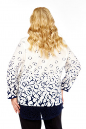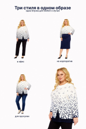 Блузка от «Абби Стиль» с артикулом 4073 и размерами от 54 до 64 в сине-белых тонах с отделкой кружевом — элегантность и комфорт для женщин с пышными формами. Представляем новинку от бренда Abbi — блузку, созданную специально для женщин, ценящих комфорт, стиль и безупречную посадку по фигуре. Эта модель — идеальный выбор для тех, кто хочет выглядеть элегантно и уверенно в любом размере. Блузка выполнена в белом цвете с эффектным принтом из насыщенных синих переплетающихся колец — современный, динамичный и очень запоминающийся узор. Контраст белого и глубокого синего создает визуально легкий и свежий образ, который легко вписывается как в офисный, так и в повседневный гардероб. Особое внимание заслуживает нижний край: он оформлен асимметричной кружевной отделкой темно-синего цвета, которая придает изделию романтичности и шика. Благодаря разрезам по бокам, блуза не только выглядит стильно, но и обеспечивает максимальную свободу движений. Силуэт — свободный, объемный, идеально скрывающий недостатки и подчеркивающий достоинства фигуры. На плечах предусмотрены мягкие подплечники из тонкого поролона — они придают линии плеч аккуратность и форму, делая силуэт более структурированным, но при этом не создавая ощущения жесткости или дискомфорта. Модель представлена на фотомодели 58 размера — и это именно тот размер, который вы получите. Блузка идеально сидит, не стесняет движений и создает ощущение легкости и комфорта даже в течение всего дня. Длинные рукава и круглый вырез горловины дополняют образ, делая его универсальным и утонченным. Это не просто одежда — это ваш новый стильный акцент, который подчеркнет вашу уверенность и женственность. Блузка от Abbi Clothes — выбор для тех, кто хочет выглядеть безупречно, чувствуя себя при этом максимально комфортно. Материал и качество: • Изготовлена из легкого итальянского трикотажа «Масло» (50% вискоза, 50% полиэстер) с эластичной белой тканью, приятной на ощупь и дышащей, легко поддающейся уходу. • Принт и кружевная отделка тёмно-синего цвета добавляют утончённости и премиального вида. Детали кроя и фасона: • Длинный рукав с мягкими подплечниками придаёт форму и аккуратно структурирует силуэт. • Декоративные разрезы слева и справа создают эффект лёгкости и динамичности, добавляя элегантный акцент при движении. • Свободный оверсайз-крой обеспечивает максимальный комфорт и свободу движений, не ограничивая повседневную активность. Универсальность: Эта блузка идеально подходит как для повседневного образа, так и для офиса или особых случаев. Она легко комбинируется с юбками, брюками и джинсами, создавая разнообразные стильные образы. Особенности посадки: Фотомодель ростом 170 см, с размером фигуры 56–58, демонстрирует посадку блузки с размером 58, которая красиво лежит на фигуре, подчеркивая линии тела и создавая гармоничный силуэт. Итог: Блузка «Абби» — это премиум женственность, комфорт и универсальность в одном изделии. Она создана, чтобы каждая женщина чувствовала себя уверенно, стильно и элегантно в любой ситуации.