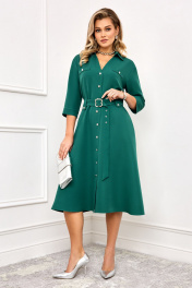 Элегантное женское платье, выполнено из роскошной плательной ткани Барби с напылением. Платье А-силуэта, отрезное по линии талии. Платье по переду с застежкой на пуговицы, в боковых швах юбки функциональные карманы. Рукав втачной, слегка спущенный, по низу с манжетой. По талии пояс из основной ткани, с застежкой на металлическую пряжку. По груди пришита листочка, декорирована пришивной пуговицей. Модель прекрасно подойдет для торжественного мероприятия и ежедневной носки. Модель 5990 размеры 46,48,50,52,54 Цвет модели: Серебро. Состав ткани: Ткань Полиэстер 65%, вискоза 32%, эластан 3%. Рост 164. Комплект: Блуза и брюки. Цена 210 руб. Элегантный и нарядный комплект, состоит из блузы и брюк. Изящная блуза прямого силуэта, выполнена из высококачественной ткани Твист с добавлением вискозы. Горловина блузы с округлым вырезом, по низу, по бокам, с небольшими разрезами. Рукав втачной, снизу с манжетой и застежкой на пуговицу. По спинке блуза с небольшим разрезом-капелькой и застежкой на пуговицу. Брюки прямые, выполнены из высококачественной ткани Твист с добавлением вискозы, по переду и спинке со складками, что придает модели особый шарм и нарядность. Пояс брюк по спинке с резинкой и застежкой сбоку на потайную молнию и пуговицу. Модель прекрасно подойдет для торжественного мероприятия и ежедневной носки. В комплект входит пояс-цепочка серебристого цвета, для придания образу еще большей нарядности и стильности. Платье с поясом.