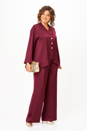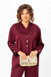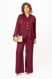 Этот костюм — воплощение сдержанной роскоши и непринуждённой элегантности. Мягкий сатиновый блеск пыльно-голубой ткани создаёт эффект благородства и лёгкости, а свободный силуэт подчёркивает женственность без излишней строгости. Свободный крой с V-образным вырезом, застежка на крупные декоративные пуговицы. Длинные рукава с широкими манжетами обеспечивают элегантную посадку, подчеркивая линию запястья. Ткань труится мягкими складками, создавая драпировку, внутренняя подкладка отсутствует для легкости и естественного движения. Брюки широкие с мягкими складками по переду и боковыми карманами вблизи боковых швов, подчёркивают лёгкость и свободу движения. Для максимально комфортной посадки по поясу вставлена эластичная резинка по спинке и бокам.