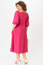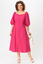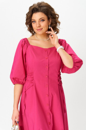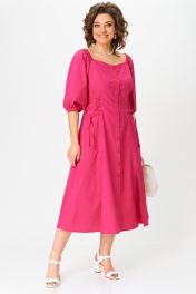 Платье из хлопковой ткани с центральной застежкой на петли и пуговицы. По переду и спинке рельефы выходящие из горловины и декоративная шнуровка по линии талии. По рельефам переда разрезы длина 39см. В боковых швах карманы. Рукав одношовный с резинкой по низу и плечам. Длина платья 112 см, длина рукава 45 см.
