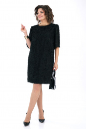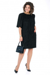 Платье А- образного силуэта, на подкладке. Перед с нагрудными выточками. Спинка со средним швом с разрезом и застёжкой на навесную петлю и пуговицу. Рукава втачные, одношовные, короткие.