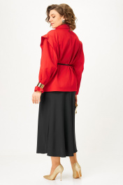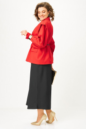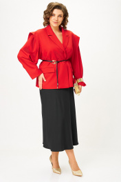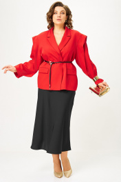 Комплект женский 2-х предметный состоит из оверсайз жакета с ремнём и юбка. Жакет прямого, свободного силуэта, на подкладке, с застёжкой на петлю, пуговицу, удлинённая линия плеча. Перед с отложными лацканами, с прорезными карманами. Спинка со средним швом. Рукава втачные, одношовные, длинные, с ассиметричными складками. Воротник отложной. Юбка полуприлегающего силуэта типа «рыбки», раскроена по косой, без пояса на обтачке, с застёжкой на потайную молнию в левом боковом шве.