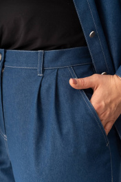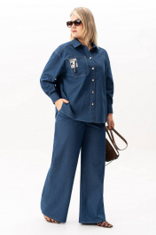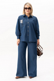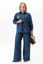 Джинсовый женский костюм двойка состоит из брюк прямого кроя и рубашки на пуговицах, что делает его универсальным выбором. Этот стильный брючный костюм создан из хлопка, что делает его комфортным и приятным к телу. Подходит для различных сезонов — весной и летом он станет незаменимым элементом гардероба. Модель с джинсами выполнена в духе классики, но при этом остается актуальной и трендовой. Возможность носить элементы раздельно — важное преимущество. Джинсы с завышенной талией станут любимым элементом гардероба как на каждый день, так и на праздничное мероприятие. А рубашку из денима можно сочетать как с женственными образами, так и с кежуал стилем. Женская одежда должна быть не только удобной, но и стильной. Благодаря качественным материалам изделие сохраняет свой вид даже после многократных стирок. Это идеальный выбор для девушек, кто ценит универсальность икомфорт. Длина рукава - 61 Длина брюк - 112