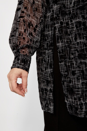 Представьте себе великолепную женскую рубашку, которая идеально подойдет как для создания праздничного настроения, так и для стильных вечерних выходов. Эта модная оверсайз рубашка из шифона, украшенная элементами флока, призвана удовлетворить самые изысканные вкусы девушек всех возрастов. Свободный крой и спущенное плечо придают ей уникальный шарм, а встречная складка на спине добавляет изюминку Вашему образу. Для удобства и комфорта она доступна в различных размерах. Эта женственная рубашка яркая и нарядная, и она подчеркнет Вашу индивидуальность в любой обстановке. Нарядная рубашка станет универсальным вариантом для празднования Нового года, корпоратива или для того, чтобы добавить сияние повседневному образу. Ведь эта праздничная рубашка будет сочетаться со всеми элементами базового или офисного стиля, добавляя элегантность Вашему образу. Вечерняя рубашка с воротником подойдет для стильных и ярких женщин, которые хотят выглядеть блестяще на каждом празднике или торжестве. Длина изделия - 85 Длина рукава - 62