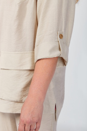 Стильный женский комплект-тройка ALGRANDA: рубашка-жакет с брюками и созвучной майкой – это стильное и комфортное решение для женщин больших размеров, идеальный выбор для тех, кто ценит комфорт и стиль. Модель выполнена из ткани из натурального волокна - хлопка с добавлением полиэстера и эластана, что позволяет чувствовать прохладу в жару, она прекрасно сидит на фигуре, обеспечивая свободу движений и приятные тактильные ощущения. Жакет свободного прямого кроя со спущенными рукавами, застегивается на 5 пуговиц и дополнен двумя накладными карманами, по боковым швам обработаны разрезы, низ жакета асимметричный. Блуза с рукавом «крылышко», горловина углубленная V-образной формы, на правом боковом шве есть декоративная нашивка. Брюки-бананы с отложными манжетами и боковыми карманами обеспечивают удобную посадку. Свободный крой комплекта позволяет носить его как в офисе, так и в повседневной жизни. Модель представлена в широком размерном ряде, что делает ее доступной для женщин с любыми параметрами. Это идеальный женский костюм как для прогулки, так и для похода в офис. Длина брюк - 103 Длина жакета - 73 Длина блузы - 71 Длина рукава жакета - 45