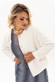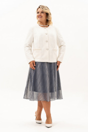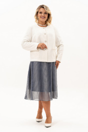 Невероятно нарядный классический женский комплект - двойка ALGRANDA: жакет и платье - это стильное и комфортное решение для женщин больших размеров, которые ценят комфорт и стиль. Жакет пошит из костюмной жаккардовой ткани на подкладке , в состав которой входит вискоза и нейлон, это обеспечивает человеку свободу движения. Жакет короткий, полуприлегающего силуэта на подкладке. Спинка со средним швом. По переду жакета есть рельефные швы от плеча. Застёжка на петли и пуговицы. Рукав втачной , длинный, двухшовный. Горловина круглая, смотрится очень актуально и эффектно в сочетании с накладными карманами, которые украшены крупным жемчугом. В комплекте к жакету идёт шифоновое платье на трикотажной подкладке. Горловина платья овальной формы, нагрудные выточки направлены от бокового шва к центру груди, спинка со средним швом и каплевидной застёжкой на пуговице. Рукав втачной, одношовный , низ собран на эластичную тесьму. Это воздушное платье очень красиво смотрится в сочетании с жакетом. В этом комплекте вы будете выглядеть безупречно!Отличный вариант для офиса и вечернего гардероба, а также и просто для повседневного применения. Грация, изящество, утончённые декоративные элементы делают этот комплект уникальным. Длина изделия - 118 Длина рукава - 43 Длина жакета - 59 Длина рукава жакета - 62