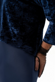 Окунитесь в мир роскоши и элегантности с бархатным вечерним платьем О-образного силуэта имитации костюма. Эта модель, словно сошедшая со страниц модного журнала , станет идеальным выбором для любого праздничного события. Мягкий бархат струится по фигуре, подчеркивая ее изгибы и создавая неповторимый образ. V-образный вырез горловины придает образу женственность и нежность, а атлас по низу платья добавляет нотку изысканности. Длина миди делает это платье универсальным, подходящим как для торжественных мероприятий, так и для романтических свиданий. Представьте себя в этом платье на новогодней вечеринке, на свадьбе лучшей подруги или на любом другом празднике – вы будете неотразимы! Кант по горловине изделия , съемный бант и удлиненные перчатки из эластичной сетки добавляют изюминку, делая образ еще более привлекательным. Платье на трикотажной подкладке выполнено из ткани которая обеспечивает комфорт и свободу движений на протяжении всего вечера. Благодаря отрезному под грудью силуэту, модель идеально садится на фигуру, подчеркивая все ее достоинства. Длина изделия - 124 Длина рукава с плечом - 62