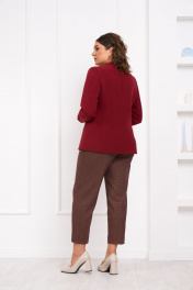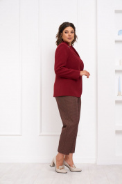 Брюки слегка заужены к низу на притачном поясе, сзади на резинке, карманы в боковых швах. Застежка спереди на молнию. Внизу небольшие разрезы. Длина брюк - 96 см. 50 размер: ОГ -106 см, ОТ -99 см, ОБ - 114см; ОТбрюк 82см (с растянутой резинкой 98см), ОБ брюк - 110см. 52 размер: ОГ -110 см,ОТ - 103 см, ОБ - 118см; ОТбрюк 86см (с растянутой резинкой 102см), ОБ брюк - 114см; 54 размер:ОГ -114 см,ОТ -107см, ОБ - 122см; ОТбрюк 90 (с растянутой резинкой 106см), ОБ брюк - 118см.