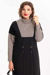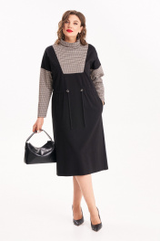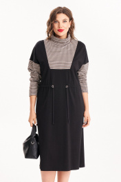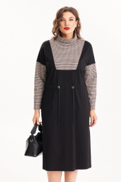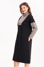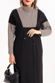 Оригинальное платье выполнено из двух видов ткани, трикотаж и лапка. За счет этого соединения платье напоминает сарафан с водолазкой.По линии талии кулиска со шнуром. В боковых швах внутренние карманы. Платье имеет длину миди, ниже колена, что делает его удобным и идеально подойдет для осенних и зимних дней. 50 размер: ОГ-112см, ОТ - 108см, ОБ -112см, длина рукава 71 см, длина изделия -109 см. 52 размер: ОГ-116см, ОТ -112см, ОБ -116см, длина рукава 71 см, длина изделия - 109 см. 54 размер: ОГ-120см, ОТ - 116см, ОБ -120см, длина рукава 43 см, длина изделия - 109 см.