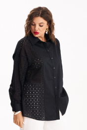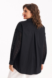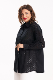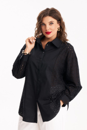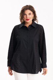 Удлиненная, стильная женская рубашка, свободного кроя, со спущенной линией плечаи фигурным низом. Рукава и бочки полочки выполнены из хлопкового шитья. По переду центральная застежка - планка на петли и пуговицы. Воротник рубашечного кроя на отрезной стойке. Рукав длинный с притачной манжетойпо низу, на застежке. По спинке двойная кокеткаи встречная складка. Рубашка удачно сочетается с брюками, шортами, юбкой. В 50 размере: ОГ 120 см, ОБ 132 см, длина изделия 74 см,длина рукава от горловины 73 см. В 52 размере: ОГ 124 см, ОБ 136 см, длина изделия 74 см,длина рукава от горловины 73 см. В 54 размере: ОГ 128 см, ОБ 140 см, длина изделия 74 см,длина рукава от горловины 73 см.