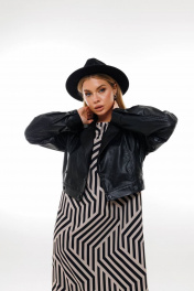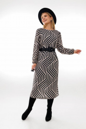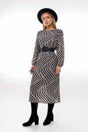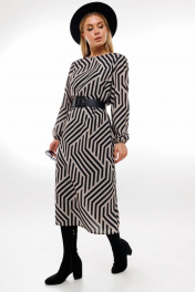 А-силуэтное платье из шифона и текстиля с ремнем Amberа Style 1005-1 геометрия