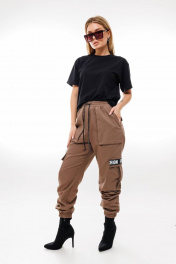 Брюки карго с накладными карманами и резинкой Ambera Style 1067 кофе