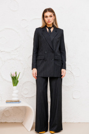 Костюм 3-ка из текстиля: брюки, жакет и галстук для офиса Ambera Style 2058В черный_полоска