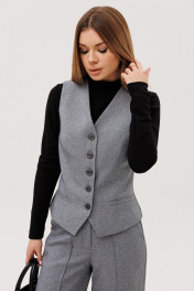 Костюм трехпредметный состоящий из жилета,гольфа, брюк .Жилет прилегающего силуэта,с V- образным вырезом, на подкладке. По переду рельефа карманы "листочки", застёжка на петли-пуговицы. По спинке вытачки.Джемпер женский прилегающего силуэта с втачным одношовным рукавом с воротником-стойкой.Элегантные женские брюки прямого кроя ,по переду на брючинах стрелки. Модель с высокой посадкой на притачном поясе обеспечивает идеальное прилегание. Спереди расположена практичная застежка на тесьму-молнию, добавляющая удобства при носке. Брюки укомплектованы функциональными боковыми карманами, что придает модели дополнительную практичность и удобство. Эта модель идеально подойдет как для офиса, так и для создания повседневных стильных образов.