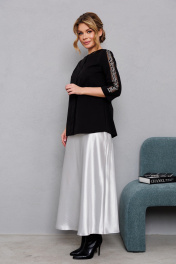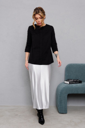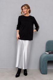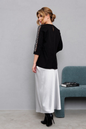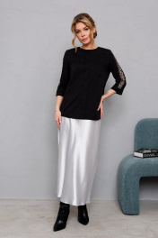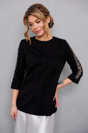 Черная хлопковая блузка с тесьмой и камнями для повседневного стиля AMORI 6455 чёрный