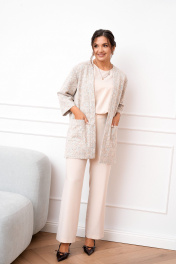 Топ и Брюки ПЭ 70%,Вискоза 27%,спандекс 3% Кардиган:Вискоза 65%,ПЭ 35%,нейлон 5%