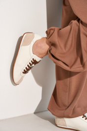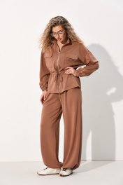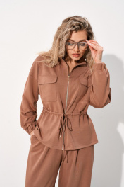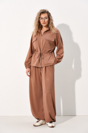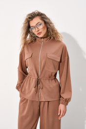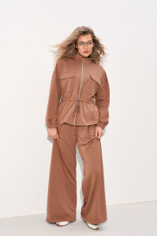 Костюм женский спортивный выполнен из нежного трикотажного полотна что обеспечит максимально комфортную посадку по фигуре. Костюм состоит из джемпера полуприлегающего силуэта и брюк прямого кроя. Джемпер с центральной застёжкой на тесьму-молнию, воротник-стойка, по полочке в области груди настрочены накладные карманы с клапаном, по талии обработана кулиса, что позволяет регулировать посадку джемпера по фигуре. Рукав втачной, линия плеча чуть спущена по низу притачная манжета с эластичной тесьмой. Брюки прямого кроя, верхний срез брюк на притачном поясе с эластичной тесьмой благодаря чему брюки садятся на любую фигуру. В боковых швах обработан карман с отрезным бочком. По низу брюк вставлена эластичная тесьма с фиксатором, что позволит формировать силуэт брюк.