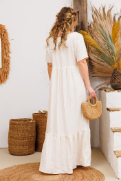 Платье белое летнее из льна и текстиля АМУЛЕТ 9735 молоко