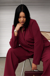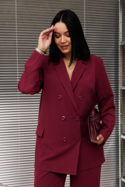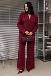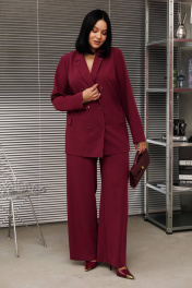 Женский брючный костюм — это идеальное сочетание стиля, комфорта и универсальности, которое станет вашим верным спутником как на деловых встречах, так и на торжественных мероприятиях. Изготовленный из высококачественной поливискозной ткани, этот костюм обеспечивает легкость и приятные ощущения при носке, а его элегантный пиджак и классические брюки подчеркивают вашу женственность и утонченность. Костюм женский 2-х предметный: жакет и брюки. Жакет полуприлегающего силуэта: бочок с выточкой по полочеке, по спинке средний шов. Застежка двухбортная, карман клапан "обманка". Рукав двухшовный. Брюки прямые. По полочке карман и складки. Пояс на резинке. Строгий и модный фасон делает его актуальным в любой ситуации, будь то офис, свадьба или прадничный выход. Длина жакета: 73см . Длина рукава: 62см. Длина брюк: 100 см.