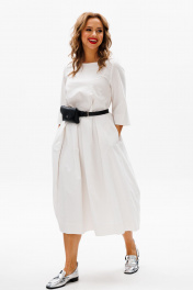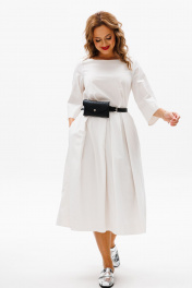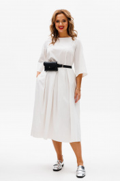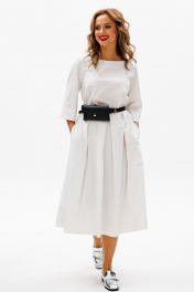Летнее платье из хлопка с складками, карманами и поясной сумочкой Anastasia 1106 молочный