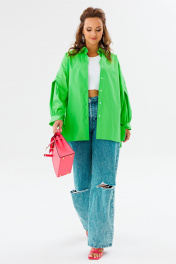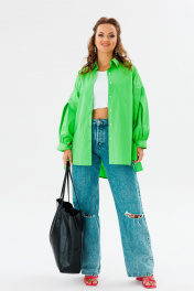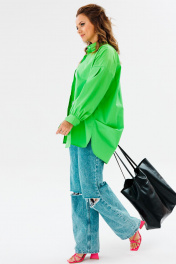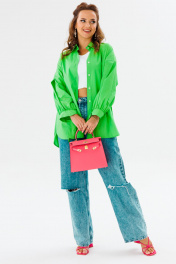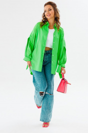 Блуза приталенная оверсайз с бал croкром и сборками Anastasia 1114 яблочный_зеленый