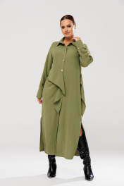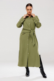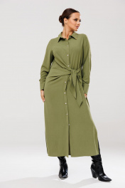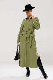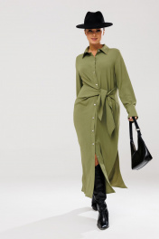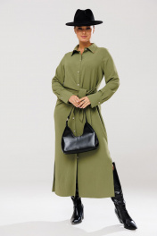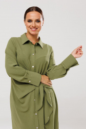 Платье рубашка с ассиметричным кроем и поясом для повседневных образов Anastasia 1135 олива