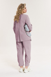 Женский брючный костюм — это идеальное сочетание стиля, комфорта и универсальности, которое станет вашим верным спутником как на деловых встречах, так и при повседневной носке. Изготовленный из высококачественной ткани, этот костюм обеспечивает легкость и приятные ощущения при носке. Костюм женский 2-хпредметный (жакет и брюки). Жакет из текстильной ткани прямого силуэта со спущенным плечом. По полочке идут грудовые выточки из бокового шва. Застежка ассиметричная. Воротник стойка. По спинке встречная складка. Рукав 3/4. По полочке идут отлетные накладные карманы с декором (термонаклейка). Брюки прямые, зауженные к низу за счет защипов. Пояс на резинке, по бокам карманы. Длина спинке:(48-52)-70см, (54-58)- 73см. Длина рукава:(48-58)-33см. Длина брюк (48-50) -93см, (52-58)-95см.