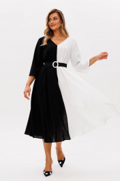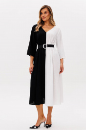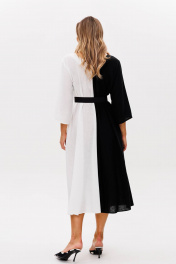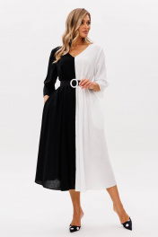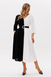 Летнее платье инь-янь – идеальный выбор для создания стильного и комфортного образа в жаркий сезон. Сарафан обеспечивает максимальный комфорт и свободу движений. Длинный фасон подчеркивает изящность силуэта и позволяет вам выглядеть элегантно в любой ситуации. Модели сарафанов представлены в больших размерах, что делает их доступными для женщин с любыми формами. Свободный крой обеспечивает приятную посадку, рукав до локтя добавит элегантности. Болагодаря контрасту черного и белого - вытягивает фигуру. В комплект к сарафану идет пояс, который изящно подчеркивает талию. Платье прекрасно сочетается с различными аксессуарами, что позволяет создавать разнообразные образы. Это платье трапеция идеально подходит для летних отпусков, вечеринок на открытом воздухе или просто для прогулок по городу. Выбирая такой сарафан, вы выбираете комфорт и красоту, которые будут радовать вас все лето. Модель расширена к низу, по бокам функциональные карманы, рукав 3/4 длины. По полочке и спинке идет V-образный вырез горловины. Платье подойдет на любую фигуру, сроет все недостатки. Пояс в комплекте. ВНИМАНИ! Форма пряжки пояса может отличаться от представленной на фото! Длина по спинке (от плечевого шва): -125 см. Длина рукава: 45 смю.