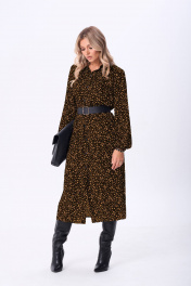 Создайте свой неповторимый образ с этим элегантым женским платьем от Anastasia! Оно имеет удивительно комфортный крой, который скроет все недостатки фигуры. Идеальный вариант как для повседневной носки, так и для праздничного выхода. Представлены два варинат носки: с поясом или без. Модель прямого силуэта. В верхней части полочки идут грудовые выточки из бокового шва. Застежка планка на петли и пуговицы до низа. Воротник на отрезной стойке. В платье по бокам - разрезы. Рукав длинный на резинкке. Пояс в комплекте. Длина по спинке: (48-52)-123см, (54-58)-126см. Длина рукава: (48-58)-63см.