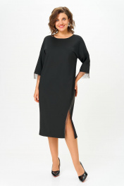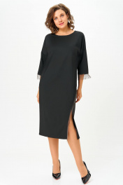 Черное платье миди — не просто одежда, это заявление о вашем стиле и вкусе. Элегантное праздничное платье прямного силуэта из трикотажного полотна. Ткань не мнется. Благодаря своему крою подойдёт для разных типов фигуры. Оно подчеркнёт вашу индивидуальность и станет отличным дополнением к вашему гардеробу. В нём вы будете чувствовать себя уверенно и комфортно, зная, что выглядите на все сто. Выбирая его, вы выбираете качество, комфорт и стиль. Классическое черное платье прямого силуэта, со спущенным плечом. По переду идет подрез с разрезом. В качестве декора по подрезу и низу рукава- металлизированная бахрома. По спинке идет средний шов. Такое платье незаменимая вещь в любом гардеробе. Рекомендуется носить на черное белье. Длина платья по спинке (48-52) - 108см, (54-58) - 112 см. Длина рукава: (48-58) - 24 см.