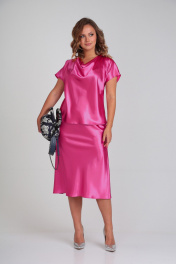 Костюм из атласа с юбкой-клёш и универсальностью Anastasia 817.3 фуксия