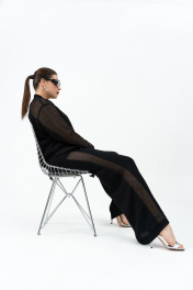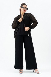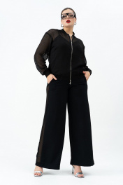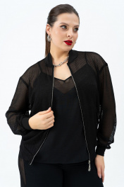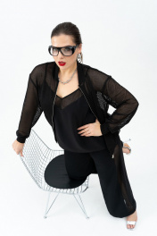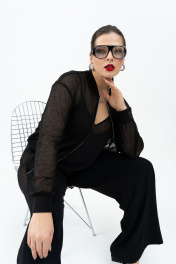 Модный соременный бомбер из сетки, с центральной бортовой застёжкой на металлическую тесьму-молнию. По горловине, по низу, и по низу рукавов обработан довяз, на полочках фигурные накладные карманы. Рукава втачные одношовные по низу с притачной манжетой. Спинка цельная.