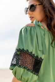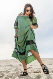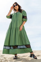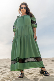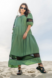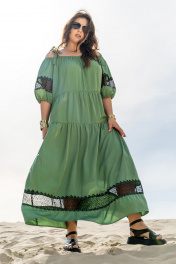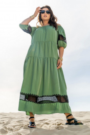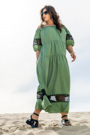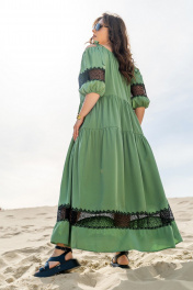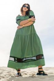 Платье из вискозы на бретелях с кружевами и сборками Andina 830 олива