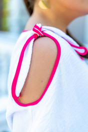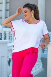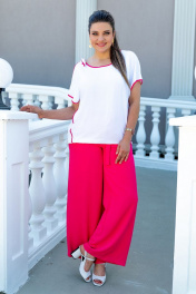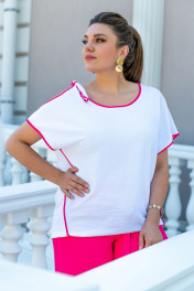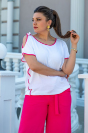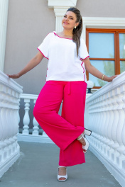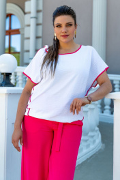 Костюм из текстиля с асимметричными деталями Andina 915-4 белый-фуксия