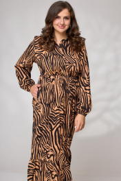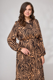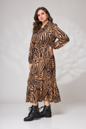 Платье миди с воланами, эластычная линия и кокеткой Andina city 8002 зебра