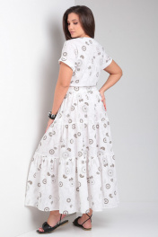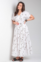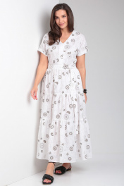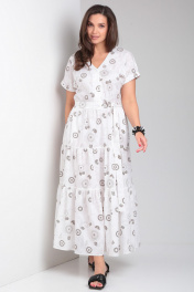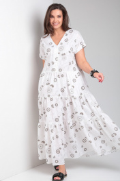 Платье прямое с воланами и спущенным плечом Andina city 8028 белый_коричневые_круги