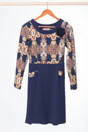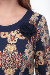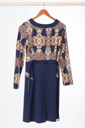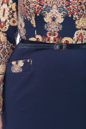Теплое трикотажное платье с карманами и съемным поясом Anelli 107 сине-желтый