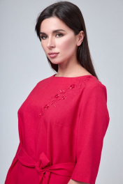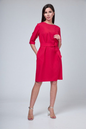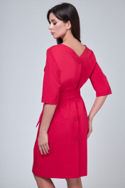 Платье из хлопка с V-образным и круглым вырезами, поясом и карманами, на каждый день Anelli 1070 красный