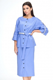 Жакет и юбка с топом на пуговицах для офисного образа Anelli 1133 лазурно-синий