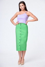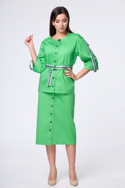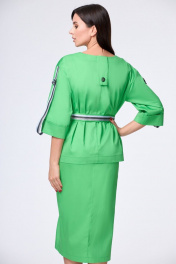 Городской костюм с жакетом, юбкой и топом из хлопка Anelli 1133 зеленый