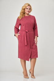 Платье из искусственной замши с карманами и запахом Anelli 1155 пунцовый