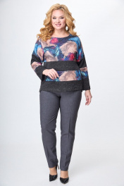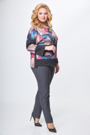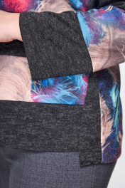 Блуза из принтованного трикотажного полотна с компаньоном для отделочных деталей. Полуприлегающий силуэт с геометрическими конструкторскими линиями по переду и цельнокроеным рукавам даёт возможность колор блоку. Вырез горловины округлый. Спинка со средним швом. Свойства трикотажа и геометрия актуальны для наступившего сезона.Хорошо комбинируется с другими предметами гардероба. Замеры для каждого размера: ОГ- обхват груди; ОТ-обхват талии; ОБ-обхват бедер; ДИ-длина изделия; ДР-длина рукава. Замеры: Размер 56. ОГ-116; ОТ-114; ОБ-120; ДИ-65; ДР-36,5. Размер 58. ОГ-120; ОТ-118; ОБ-124; ДИ-65; ДР-36,5. Размер 60. ОГ-124; ОТ-122; ОБ-128; ДИ-65; ДР-36,5. Размер 62. ОГ-128; ОТ-126; ОБ-132; ДИ-65; ДР-36,5. Размер 64. ОГ-132; ОТ-130; ОБ-136; ДИ-65; ДР-36,5. Размер 66. ОГ-136; ОТ-134; ОБ-140; ДИ-65; ДР-36,5.