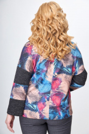 Мультиколор блуза из трикотажа с геометричным принтом Anelli 1166 коричнево-голубой