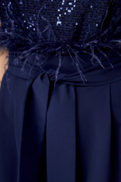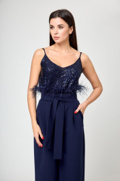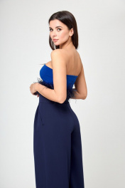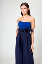 Этот великолепный пояс-баска – истинное произведение искусства, воплощение роскоши и изыска. Изготовленный с использованием страусиных перьев, он не только придает вашему образу неповторимую изысканность, но и обладает удивительным магнетизмом. С этим поясом у вас есть два варианта расположения перьев: вверху, создавая волнующий вихрь из элегантности, или внизу, придавая образу таинственное очарование. Меняя конфигурацию, вы легко адаптируете его к разным нарядам – будь то изысканное платье или стильный жакет. Этот пояс от Анелли не просто аксессуар, он — магия, которая запоминается, украшает и подчеркивает вашу неповторимую индивидуальность в каждом движении. Длина изделия 271 см. Синий: На модели костюм 1190 от Анелли.