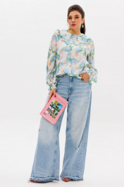 Демисезонная женская блуза с рюшем и принтом Миядзаки Anelli 1273 миядзаки