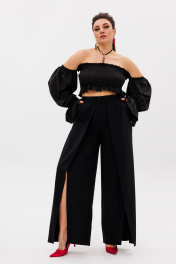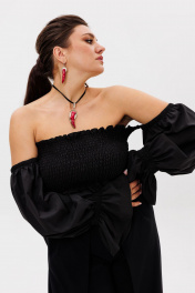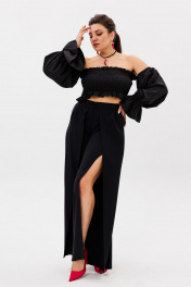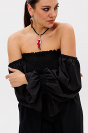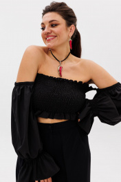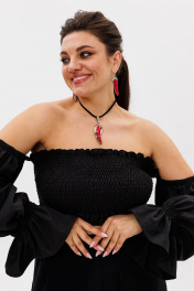 Блуза с романтичными рукавами станет эффектным элементом вашего праздничного образа. Укороченный крой и ликра по всей длине блузы придают модели особый шарм и индивидуальность. Универсальный черный цвет и выразительная текстура позволяют сочетать эту блузку с кожаными брюками, брюками Жасмин от Анелли 1442, юбками-миди или джинсами. Она легко станет центральным акцентом как в вечернем, так и в кэжуал-образе, добавляя любому наряду ноту праздничной элегантности. Практичный материал не мнется, сохраняет форму и позволяет свободно двигаться, так что вы сможете наслаждаться торжеством без всяких забот. Идеальный выбор для новогодней ночи, рождественского ужина или любого особого случая. В блузе вы будете чувствовать себя уверенно, празднично и неотразимо. Размер 42: ОГ-60, ОТ-58, ДИ-21, ДР-54; Размер 44: ОГ-66, ОТ-64, ДИ-22, ДР-54; Размер 46: ОГ-70, ОТ-68, ДИ-22, ДР-54; Размер 48: ОГ-72, ОТ-70, ДИ-22, ДР-53