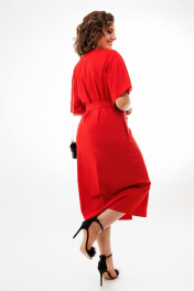 Красное платье с поясом, Volанами и универсальным кроем Anelli 1391 красный